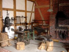 W trzeciej części muzeum, w dawnym budynku gospodarczym z XIX wieku, również pochodzącym z Dąbek, znajduje się ekspozycja warsztatu szewskiego. Wszystkie maszyny pochodzą z początku XX wieku i są nadal sprawne!