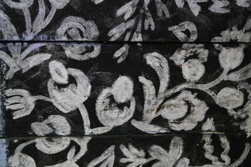 Powała w sieni domu Felicji Curyłowej – pomalowana sadzą i wapnem w kwiatowe ornamenty, pierwsze dzieło Felicji Curyłowej, namalowane przez nią w wieku 10 lat (1914 r).