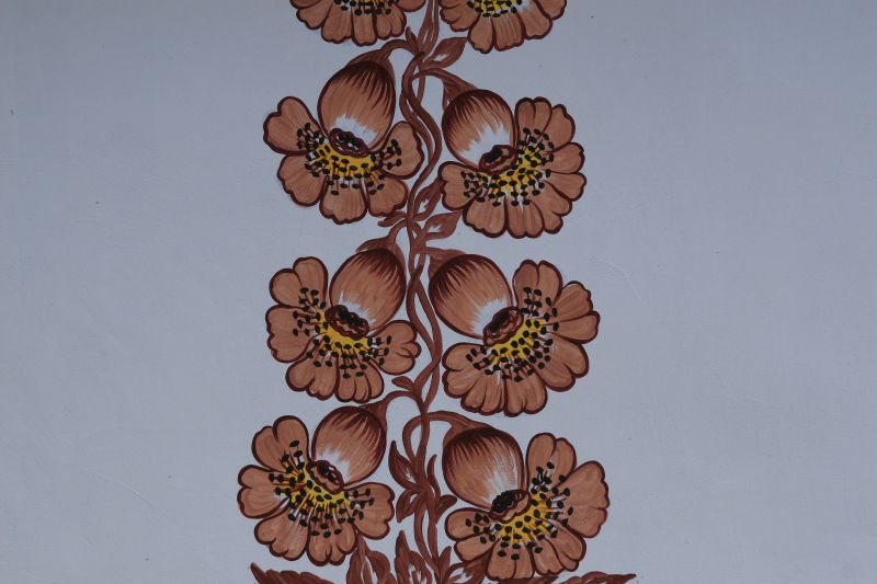 Detal ściany w domu Wandy Raci. Tradycyjne, zalipiańskie motywy kwiatowe.