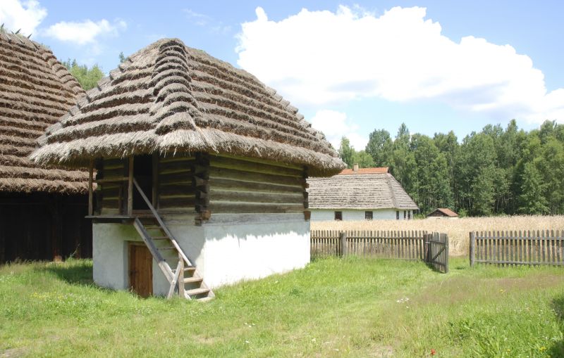 Rzeszowska zagroda Szylarów ze wsi Markowa. Spichlerz „sołek”, będący częściową rekonstrukcją obiektu z XIX wieku. Budynek o konstrukcji zrębowej z łączeniami na narożach "na rybi ogon". Dach czterospadowy, kryty słomą w schodki.