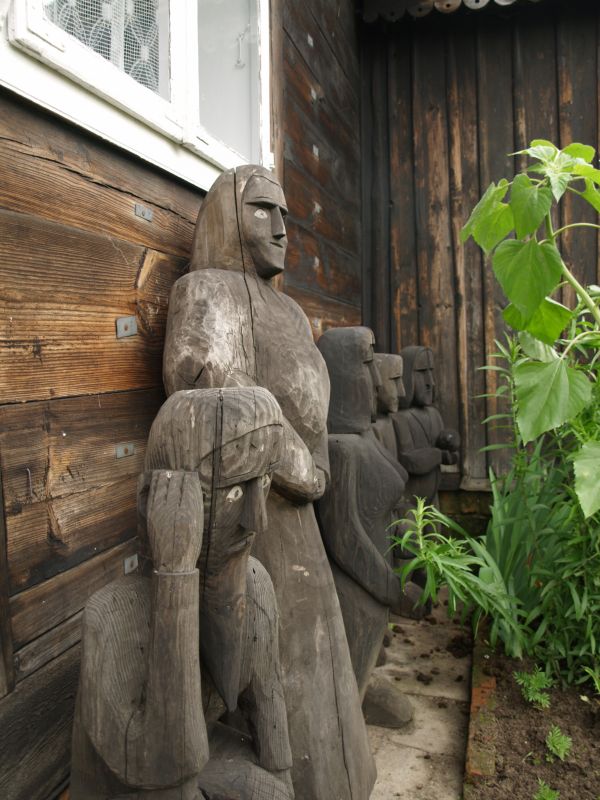 Rzeźby przed domem rzeźbiarza Szczepana Muchy.