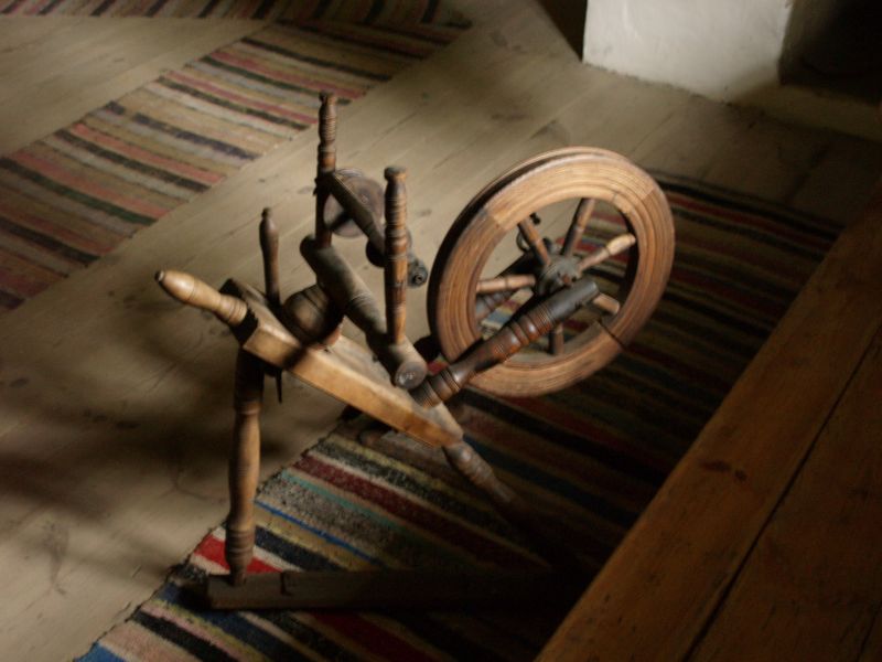 Kołowrotek – fragment wyposażenia izby mieszkalnej chałupy z miejscowości Sieradz z II połowy XIX wieku.