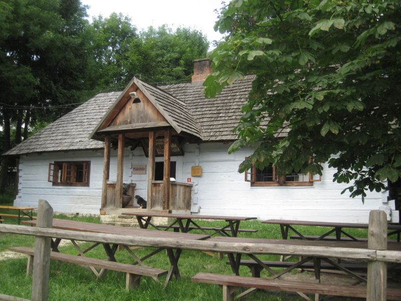 Chałupa ze wsi Bełżec z 1866 roku. Budynek o konstrukcji zrębowej (węgłowej). Dach czterospadowy kryty gontem.