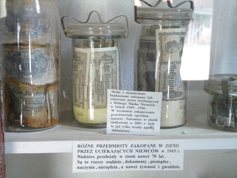 Słoiki z niemieckimi banknotami zakopane lub schowane przez Niemców uciekających z Dolnego Śląska.