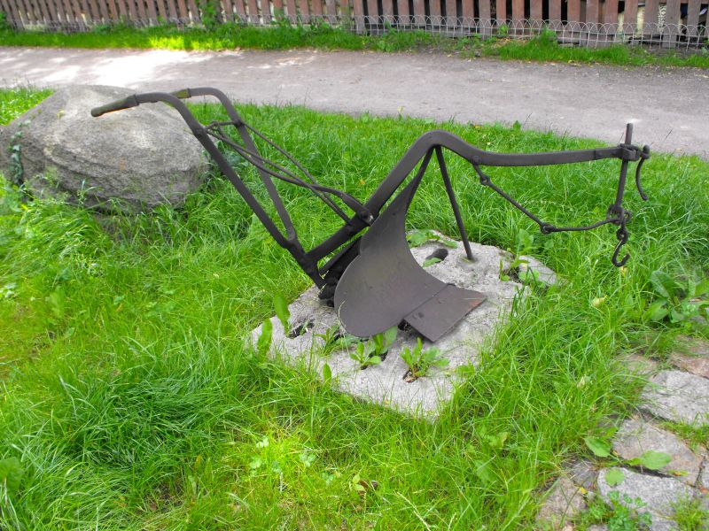 Żelazny pług. Kowal zajmował się naprawą takich urządzeń, zwłaszcza uszkodzeniami lemiesza, który mógł się wygiąć lub wyszczerbić na kamieniu.