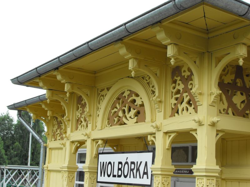 Ażurowe elementy dekoracyjne ganku stacyjki Wolbórka (później Czarnocin).