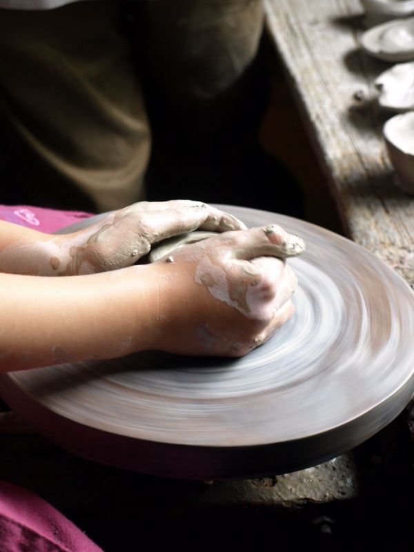 Koło garncarskie. Warsztat garncarski w domu podmiejskim z miejscowości Chrzanów.