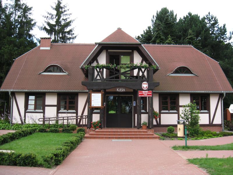 Jeden ze współczesnych budynków muzeum mieszczący kasę. Budynek o konstrukcji inspirowanej szachulcową. Dach naczółkowy.