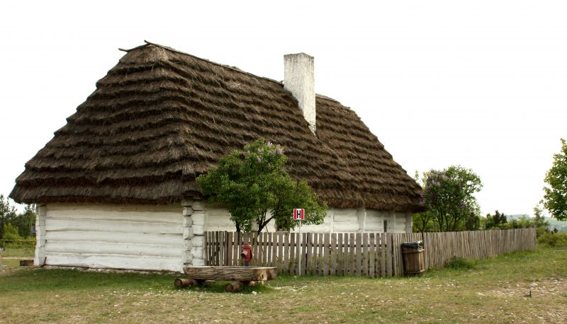 Chałupa zamożnego gospodarza ze wsi Rokitno z 1805 roku. Budynek dwurodzinny, szerokofrontowy z bali sosnowych o konstrukcji zrębowej z węgłami łączonymi na obłap. Dach czterospadowy kryty schodkowo strzecha.