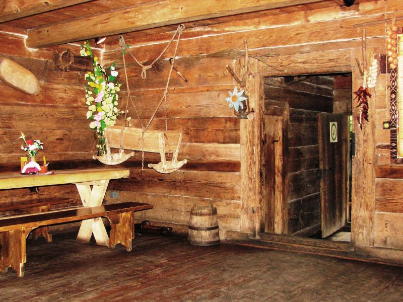 Wnętrze gospody „Pod Białą Górą” [spichlerz z Przeczycy (pow. dębicki) z 1732 roku]. Budynek o konstrukcji zrębowej, wiązany w węgłach „na obłap” z ostatkami. Dach czterospadowy, kryty gontem.