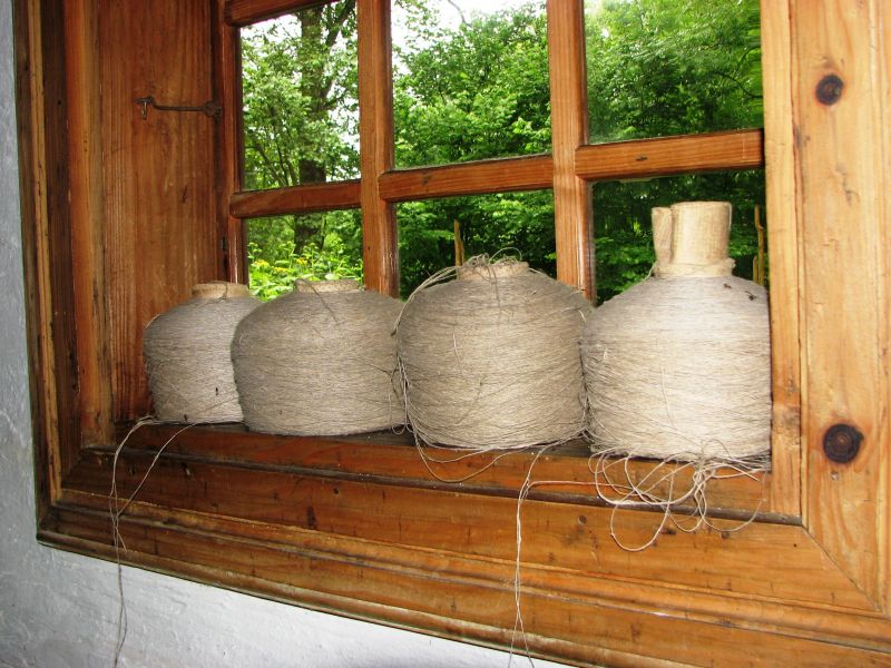 Bojkowska chałupa („chyża”) ze Skorodnego (pow. bieszczadzki) z 1861 roku. Snowadła - fragment warsztatu tkackiego w bojkowskiej chałupie ze wsi Skorodne.