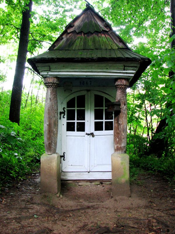 Kapliczka domkowa ze wsi Liszna z 1867 roku. Kapliczka o konstrukcji zrębowej, z zewnątrz szalowana deskami. Dach trójspadowy, kryty gontem, wsparty od frontu na dwóch kolumnach.