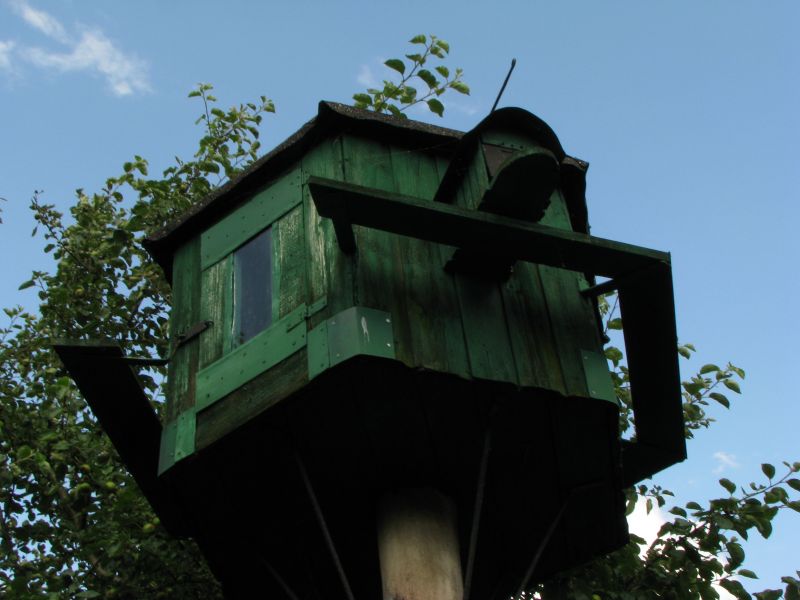 Gołębnik - dom dla ptaków ustawiony na jednym wysokim palu. Gołębnik sześcioboczny z kilkoma parami ‘drzwi’ dla gołębi.