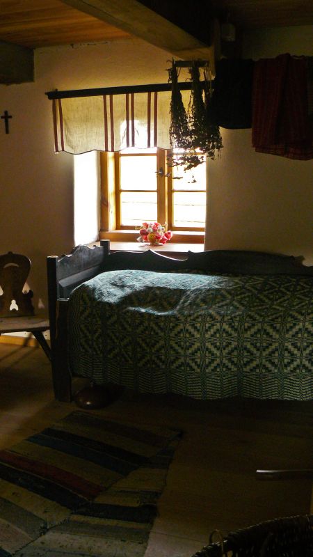 Wnętrze chałupy tkaczki. Podłoga z desek.