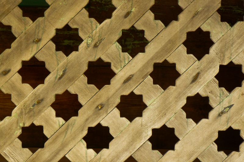 Detal dekoracyjny: ozdobna, drewniana kratownica.