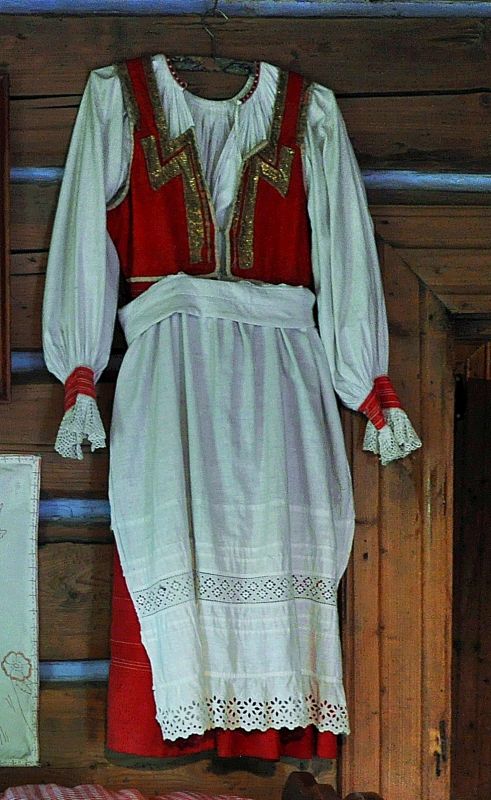 Spiski strój kobiecy : koszula bawełniana z rękawami długimi marszczonymi u dołu, koronkową obszywką przy szyi i rozcięciem do połowy przodu, celem łatwiejszego włożenia przez głowę; stroju to spódnica zwana „kanafoską”, która jest uszyta z pasiatego płótna o tle czerwonym; przód „kanafoski” stanowił tzw. „przodek”, czyli płat z płótna lnianego; na koszule zakładano gorset, zwany też „lajbikiem" szyty z materiałów jednobarwnych, przeważnie z aksamitu („barsianów”) lub sukna i ozdabiany tasiemkami. |