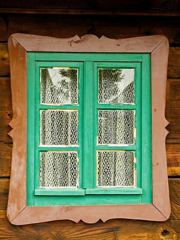 Zdobione okno chałupy zamożnego gospodarza ze wsi Pakosław (koło Lwówka) z 1834 roku.