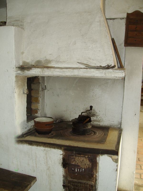 Urządzenie ogniowe z paleniskiem zamkniętym (typ angielski) i z piecem chlebowym. Nad kuchnią kaptur.