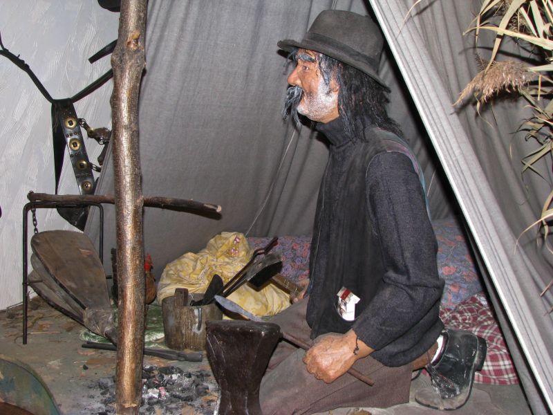 Fragment wystawy poświęconej historii i kulturze Romów/Cyganów w Muzeum Etnograficznym w Tarnowie poświęconej. Na zdjęciu kowal.