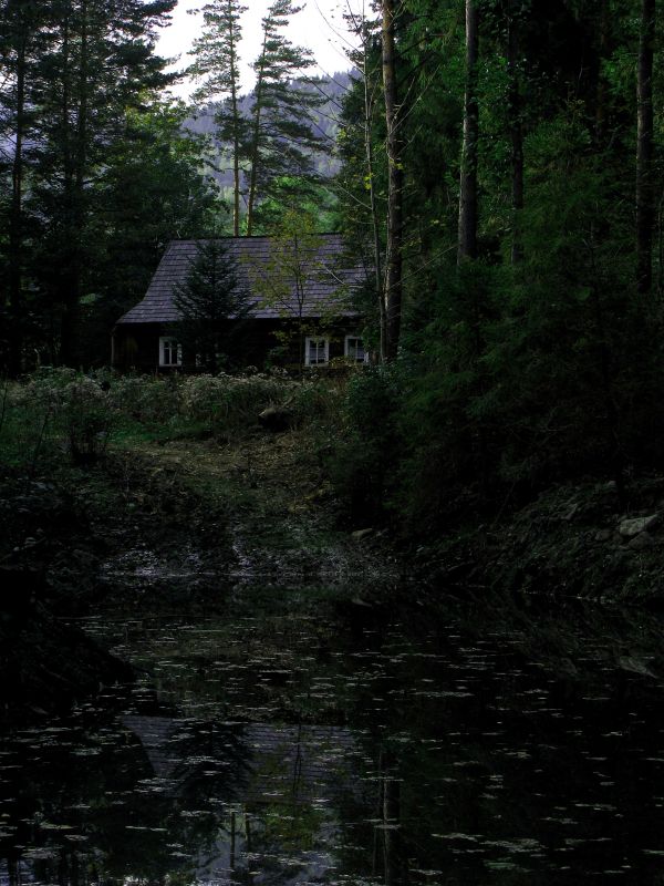 Jeziorko na terenie muzeum. W tle chałupa wójta Maja z drugiej połowy XVIII wieku.