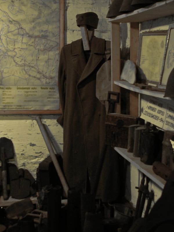 Muzeum Kultury Łemkowskiej w Zyndranowej. Wystawa militariów z I i II wojny światowej znajdująca się we wnętrzu koniuszni.