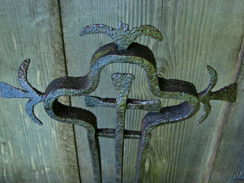 Muzeum Kultury Łemkowskiej w Zyndranowej. Krzyż kuty, metalowy - element "łemkowskiej ściany płaczu".