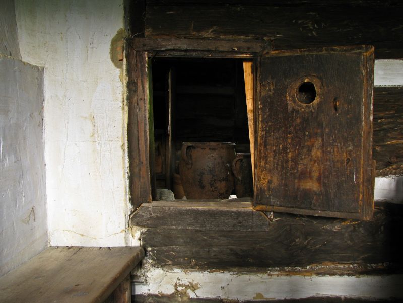 Okienko z izby białej do izby czarnej w chałupie Słopiakowej.
