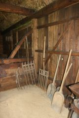 Stodoła stojąca nieopodal jest natomiast pełna różnego typu narzędzi rolniczych.