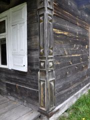 Muzeum Małej Ojczyzny w StudziwodachMuzeum Małej Ojczyzny w Studziwodach jest położone w Bielsku Podlaskim, średniej wielkości mieście powiatowym. Mimo to w jego otoczeniu zupełnie nie czuć miejskiej atmosfery. Muzeum jest otoczone przez domy jednorodzinne i gdyby nie polsko-białoruski napis „Dom Mieszczański”, wyryty na drewnianej tablicy, można by mieć wątpliwości, czy trafiliśmy we właściwe miejsce. Trudno powiedzieć, czy Muzeum Małej Ojczyzny powstało z przypadku czy z potrzeby. Zapoczątkował je dom odziedziczony przez Doroteusza Fionka. Można by rzec zwykły, drewniany, wiejski dom przedwojenny, jakich na Podlasiu i Polesiu wiele. Większość nowych właścicieli, spadkobierców żyjących w nowoczesnych budynkach, pozbywa się kłopotliwego spadku sprzedając go lub przerabiając na domek letniskowy (co jest w zasadzie związane z dewastacją budynku). Jednak Doroteusz Fionek zrobił coś innego. Zafascynowany tradycją postanowił własnym sumptem otworzyć muzeum regionu, z którym jest związany. I tak w 1986 roku powstało Muzeum Małej Ojczyzny w Studziwodach – niegdyś wsi, a obecnie dzielnicy Bielska Podlaskiego. Muzeum działa od 1993 roku, a od 2000 jest prowadzone przez towarzyszenie Muzeum Małej Ojczyzny w Studziwodach założone właśnie w tym celu. Na jego terenie możemy poznać przykład zabudowy miejskiej Bielska (dom rodziny Antychowiczów) i wiejskiej Studziwod (dom Kondratiuków). Studziwody do drugiej połowy XX wieku były niewielką wsią zamieszkałą, podobnie jak wiele innych miejscowości w okolicy, w znacznej mierze przez prawosławnych Białorusinów. Wyróżniało ich nie tylko pochodzenie etniczne i religia, ale także język, zwyczaje czy w końcu elementy zdobnicze i architektoniczne. A mimo to Białorusini w tych okolicach od zawsze byli „swoi”, „tutejsi”. Pielęgnowaniem pamięci o tradycjach tej grupy (ale także innych grup mniejszościowych okolicy) zajmuje się Stowarzyszenie. Zadanie to ułatwia faktem, że – jak powiedział jeden z członków Stowarzyszenia – tutaj tradycji się nie rekonstruuje i nie odtwarza, tutaj tradycją się żyje. Mimo że część muzealna obecnie stanowi tylko jeden z elementów pracy Stowarzyszenia, przyjrzymy się baczniej ekspozycji, zanim poznamy inne atrakcje, jakie na nas czekają w Studziwodach. Dom Kondratiuków – spadek pana Doroteusza – wybudowano w 1925 roku w konstrukcji węgłowej. Wyróżniają go nie tylko rzeźbione ozdobniki węgłów, ale także niewielkie okienka doprowadzające światło do części użytkowych czy specyficzna bryła dachu pokrytego drewnianymi dachówkami. Szczegóły te wyraźnie wskazują, że jej mieszkańcy byli Białorusinami mieszkającymi na Podlasiu. W środku możemy obejrzeć typową izbę kuchenną z piecem pomalowanym na zielono, łóżkiem i zdobionymi ławami. Szczególną uwagę warto poświęcić zdobieniom. Prócz typowego pająka pod sufitem, w oknach możemy zobaczyć papierowe ozdoby pełniące funkcję zasłon – element typowy dla ludności białoruskiej regionu. Ważne w wystroju izby są ikony ozdobione haftowanymi bieżnikami – wyraźne świadectwo wiary mieszkańców chałupy. Izbę kuchenną od kolejnych pomieszczeń oddziela sień. Przechodzimy z niej do komory, w której obecnie odbywają się m.in. wystawy białoruskich twórców ludowych. W kolejnym pomieszczeniu możemy obejrzeć stroje męskie i damskie z typowymi białoruskimi haftami, dla których charakterystyczny jest kolor czerwony. W tym pomieszczeniu znajduje się także kołowrotek i krosno – nadal używane np. w trakcie letnich warsztatów prowadzonych dla dzieci. W zagrodzie wiejskiej prócz chałupy jest także „kurna” chata i odgrodzony plecionym płotem drewniany wychodek. Przechodząc na drugą stronę ulicy znajdziemy się przed pochodzącym z 1820 roku budynkiem typu miejskiego niegdyś należącym do rodziny Antychowiczów. Dwupiętrowy, wciąż remontowany dom został tu przeniesiony praktycznie z centrum miasta. Gdy rozpoczęto przenosiny odkryto pod nim liczne skorupy naczyń glinianych, pochodzące nawet ze średniowiecza. Obecnie część wykopalisk można podziwiać w jednej z izb przeznaczonych na ekspozycję. Na całym terenie Muzeum znajdują się drewniane rzeźby. Brama do wiejskiej zagrody, przedstawiająca postacie mieszkańców okolicy, drewniana kapliczka słupowa czy scenka rodzajowa dwóch grajków weselnych siedzących przed chałupą to efekt letnich plenerów dla białoruskich artystów. Stanowią one jeden z licznych elementów wciąż żywej tradycji. Innymi jej przejawami są tworzone w trakcie warsztatów tkaniny czy wycinanki okienne, młodzieżowy zespół pieśni i tańca Żemerwa czy festiwal muzyczny „Tam po majowuj rosi”, organizowany głównie dla samych artystów ludowych. Szczególnym wydarzeniem w życiu Muzeum są także odgrywane zaślubiny, odbywające się w przestrzeni ekspozycji wiejskiej według tradycji lokalnej. Gdyby nie błyski fleszy i twarze widzów, zaglądających przez okna, można by mieć złudzenie, że przyglądamy się prawdziwej ceremonii. To jednak nie wszystkie aktywności Stowarzyszenia. Dbając o kultywowanie tradycji Białoruskiej na Podlasiu i Polesiu, członkowie Stowarzyszenia odwiedzają ludowych muzyków i śpiewaków, rejestrując ginące już przyśpiewki i melodie. Albumy z tymi nagraniami są regularnie wyróżniane w konkursach (np. konkursie Polskiego Radia „Fonogram źródeł”). Równocześnie w Studziwodach są wydawane publikacje i periodyki służące spisaniu historii, języka i życia codziennego białoruskich mieszkańców Podlasia i Polesia. Muzeum Małej Ojczyzny w Studziwodach jest miejscem kameralnym, które być może nie zachwyci nas wielością zbiorów. Warto tu jednak zajrzeć, by poznać często marginalizowany skrawek kultury Polski i docenić zaangażowanie twórców i członków Stowarzyszenia w „zachowanie tradycyjnej kul