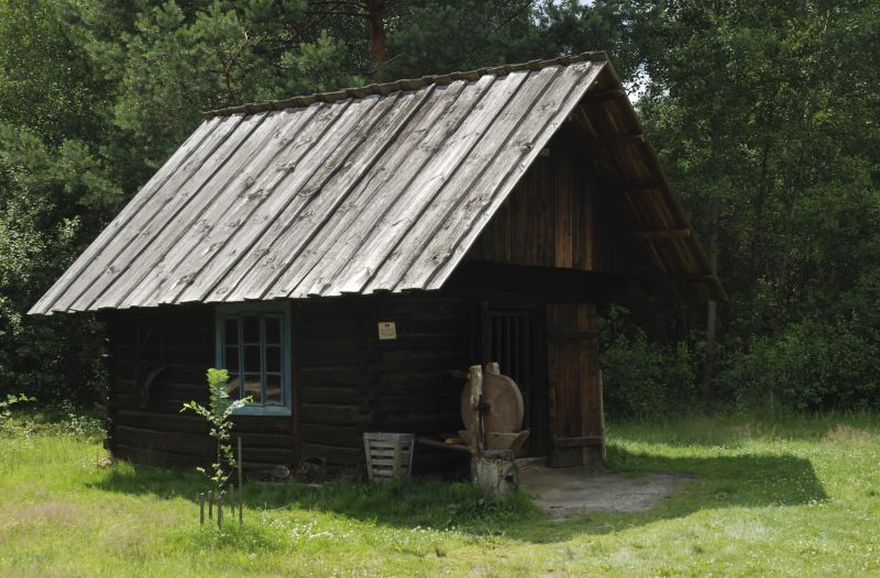 Lasowiacka kuźnia z początków XX wieku ze wsi Staniszewskie. Budynek wąskofrontowy, jednownętrzny. Ściany zrębowe z łączeniami naroży na "rybi ogon", z ostatkami. Dach dwuspadowy z podcieniem szczytowym, kryty dranicami. Przed wejściem do kuźni stoi kamienne koło szlifierskie (brus) do ostrzenia narzędzi oraz wiertarka (bormaszyna), wyprodukowana przez fabrykę maszyn \"Neptun\" w Końskich. |