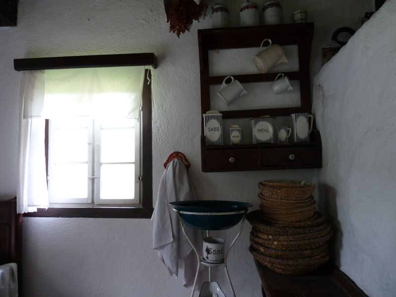 Wnętrze chałupy ze wsi Nowa Łomnica z I połowy XIX wieku. Kącik toaletowy.