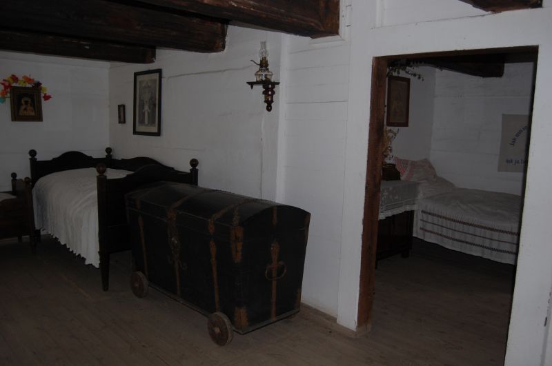 Izba biała w chałupie bogatego gospodarza ze wsi Krobielewo pochodzącej z 1803 roku. Widok na pokój panieński.