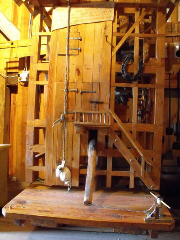Ekspozycja w budynku młyna. Model młyna wiatrakowego (typu koźlak).