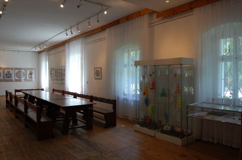 Sala wystawiennicza mieszcząca się w budynku administracyjnym skansenu, którego funkcje pełni XVIII-wieczna leśniczówka.