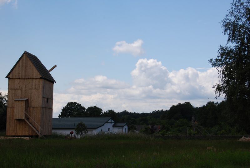 XIX-wieczny dwupoziomowy wiatrak ze wsi Kiełcz (region dolnośląski) przeniesiony do muzeum w 2003. Wiatrak typu "koźlak". Cały budynek osadzony jest na jednym słupie – u dołu o przekroju kwadratowym, wyżej okrągłym, który wspierany jest z czterech stron „kozłami”. Budynek o konstrukcji słupowej oszalowanej pionowymi deskami. Dach dwuspadowy. |