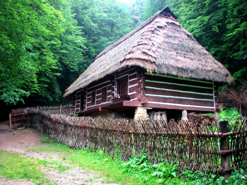 Bojkowska chałupa („chyża”) ze wsi Skorodne z 1906 roku. Budynek o konstrukcji zrębowej z belek jodłowych z węgłami łączonymi „na obłap” z ostatkami. Dach czterospadowy kryty słomianą strzechą z kalenicą wzmocnioną gontem. Budynek wzniesiony na kamieniach. Wokół zagrody znajduje się płot pleciony gałęzi jodłowych. |