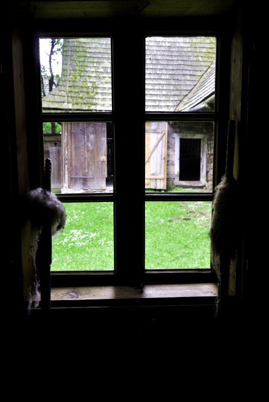 Zagroda Korkoszów w Czarnej Górze. Widok przez okno na podwórko.