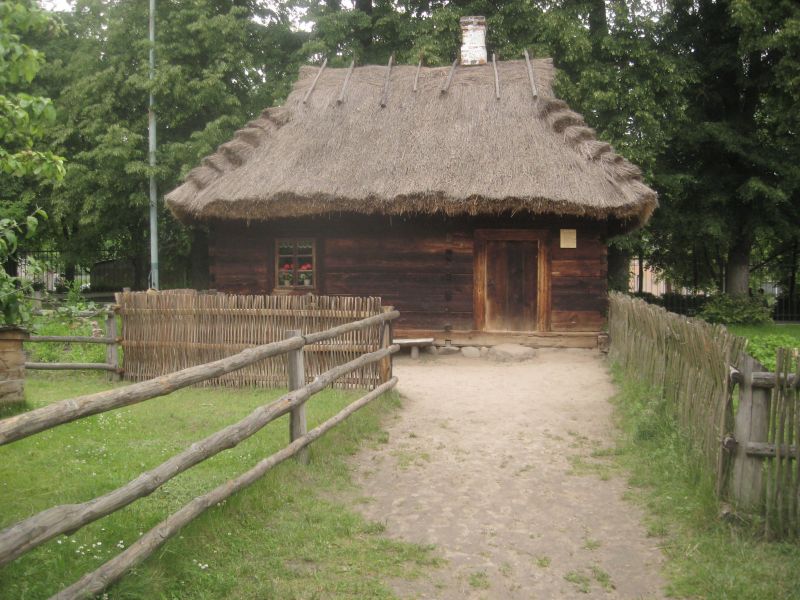 Szerokofrontowa chałupa ze wsi Piętki Gręzki z około 1850r. Budynek o konstrukcji węgłowej. Czterospadowy dach pokryto słomą.