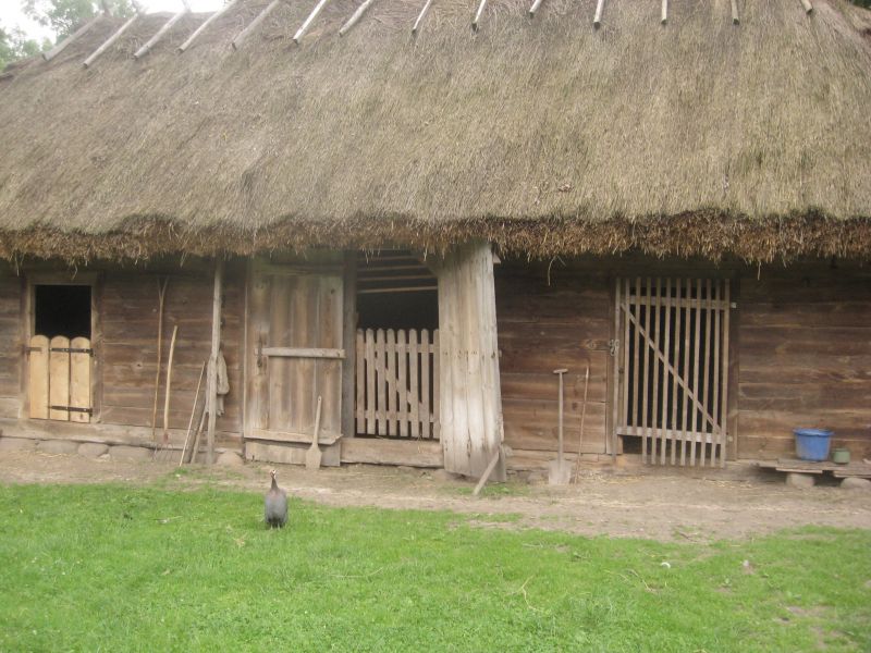 Przydomowa obora ze wsi Tymianki Dębosze. Budynek o konstrukcji węgłowej, kryty słomą. Dziś także służy do hodowli inwentarza muzealnego.