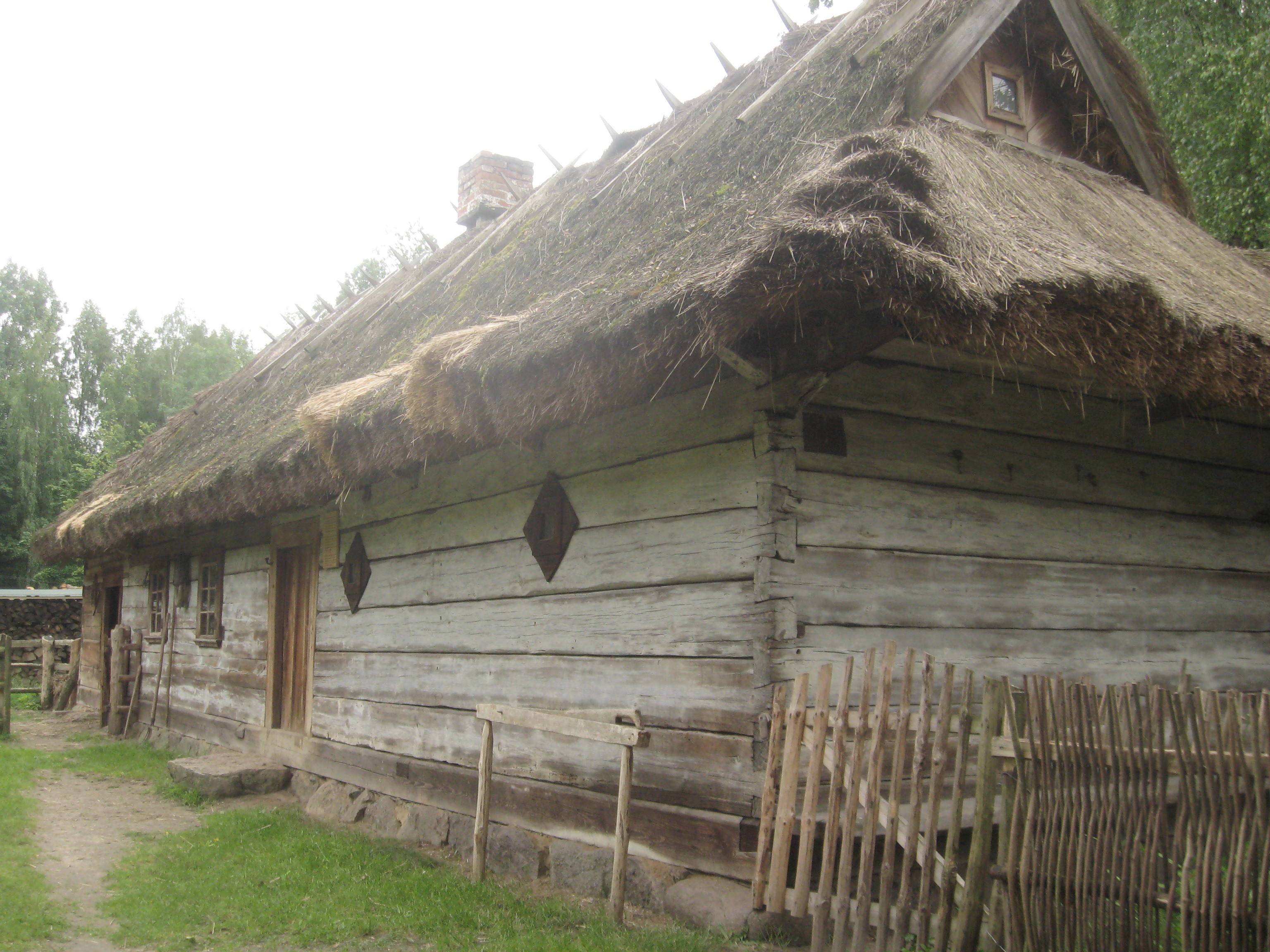 Chałupa wschodniopodlaska/ białoruska ze wsi Saki z końca XIX wieku. Budynek szerokofrontowy o konstrukcji węgłowej z narożami łaczonymi na "rybi ogon". Wyróżnia ją łączenie różnych funkcji – w jednotrakowym budynku w pierwszej części umieszczono komorę, sień i izbę mieszkalną, w drugiej – oborę. Dach przyczółkowy kryty słomą, wzmocniony kozłowaniem. |