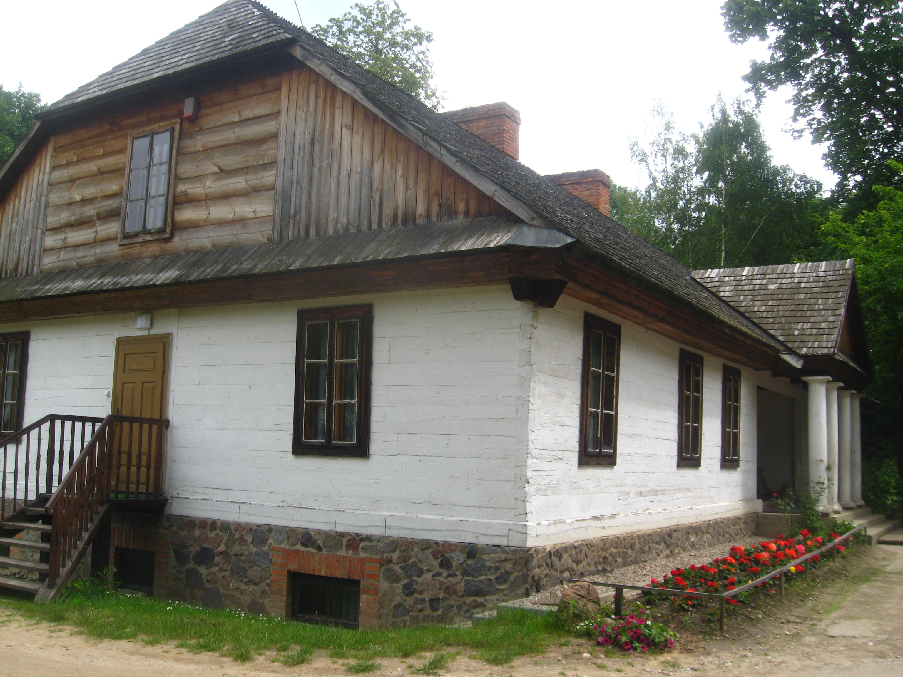 Dworek myśliwski z 1858 roku z miejscowości Siemiatycze. Budynek o konstrukcji węgłowej z narożami łączonymi na "rybi ogon" bez ostatków. Dach dwuspadowy kryty gontem tworzy podcień znajdujący się nad gankiem przed głównym wejściem.