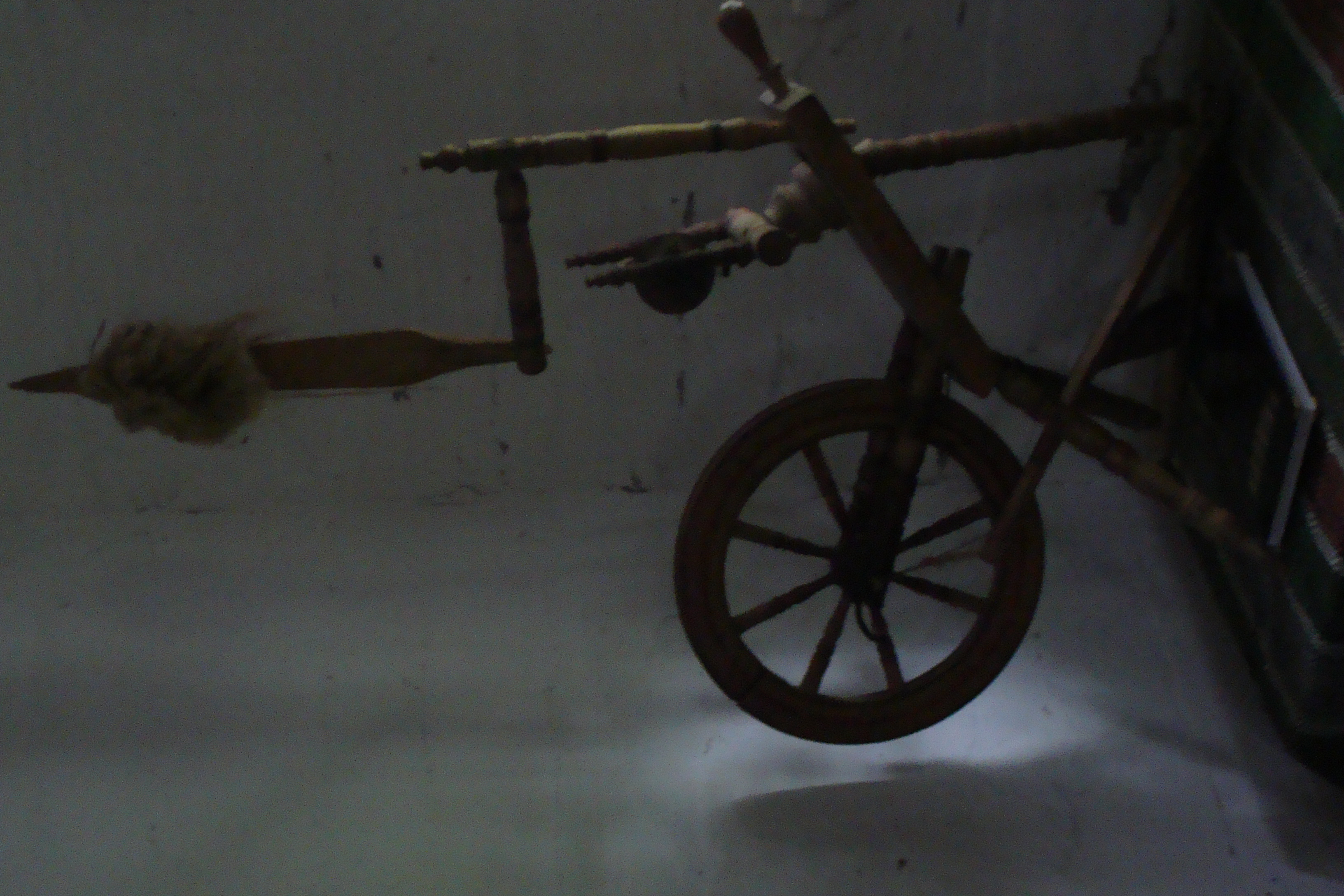 Kołowrotek służący do wytwarzania przędzy. (bardzo popularny ze względu na swój społeczny wymiar – w odróżnieniu od warsztatu tkackiego nie przywiązywał kobiety do sfery domowej).