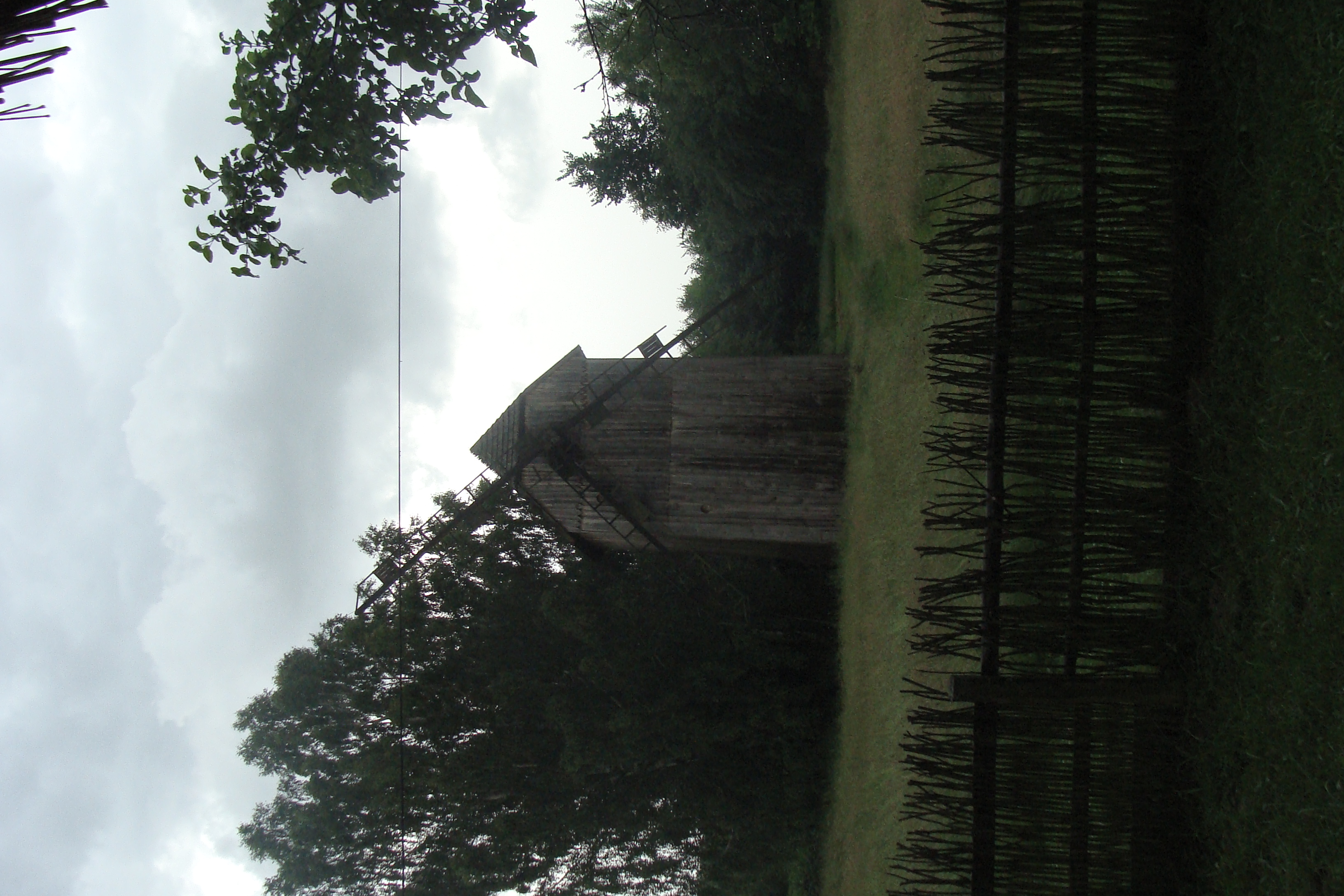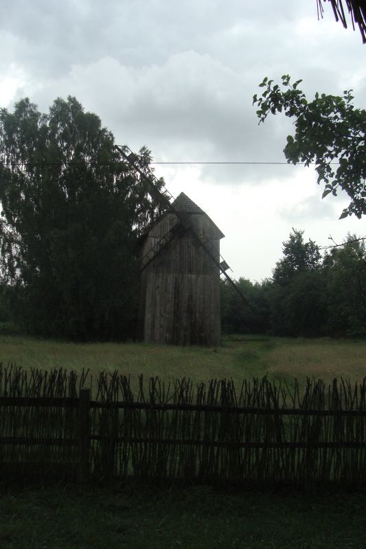 Wiatrak koźlak z miejscowości Wołoskowola z początku XX wieku. Budynek o konstrukcji słupowo-ryglowej oszalowany pionowymi deskami. Dach dwuspadowy z naczółkiem od strony skrzydeł, kryty gontem.