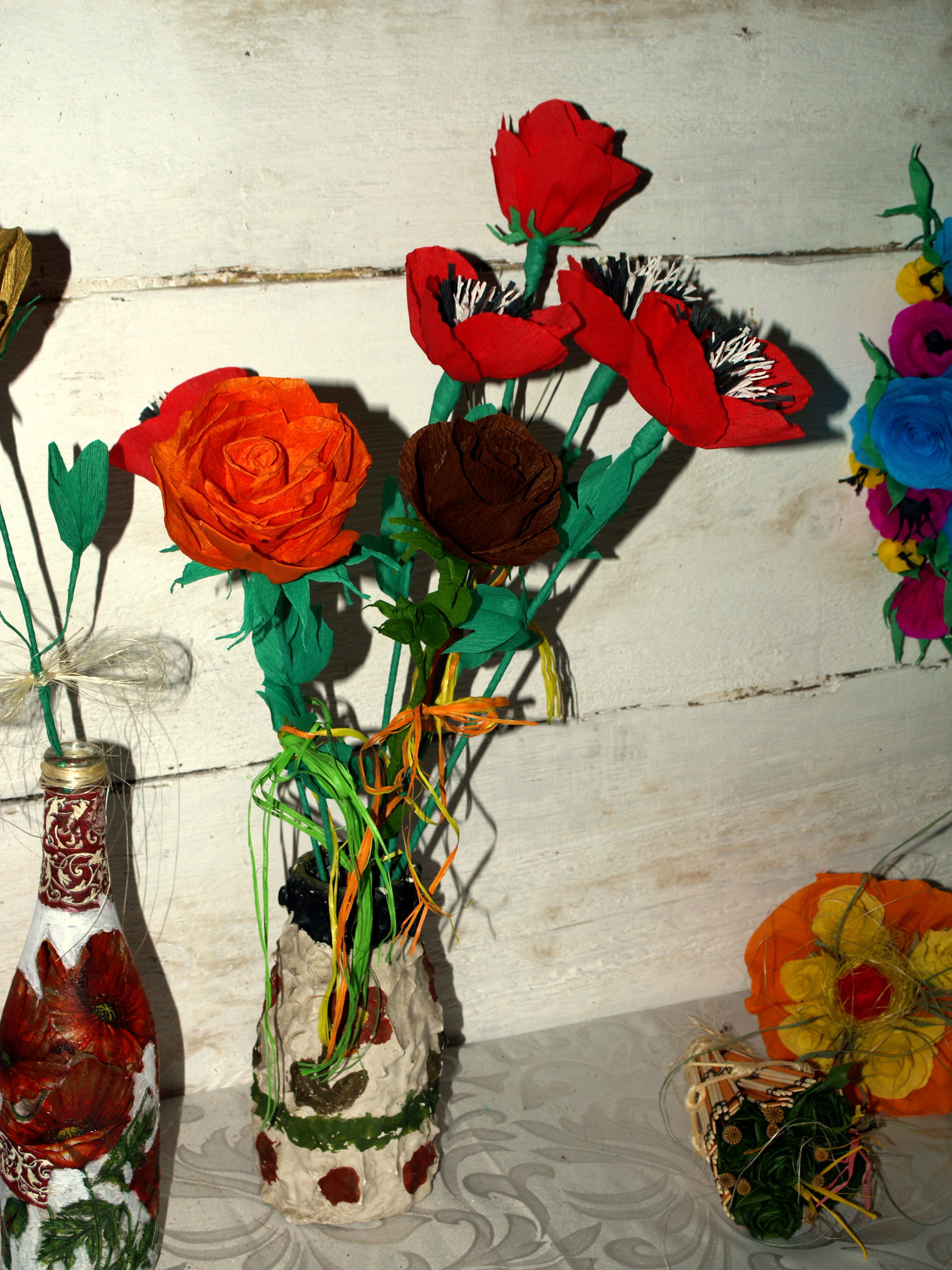 Kwiaty z bibuły wyrabiane na miejscu przez artystkę ludową.