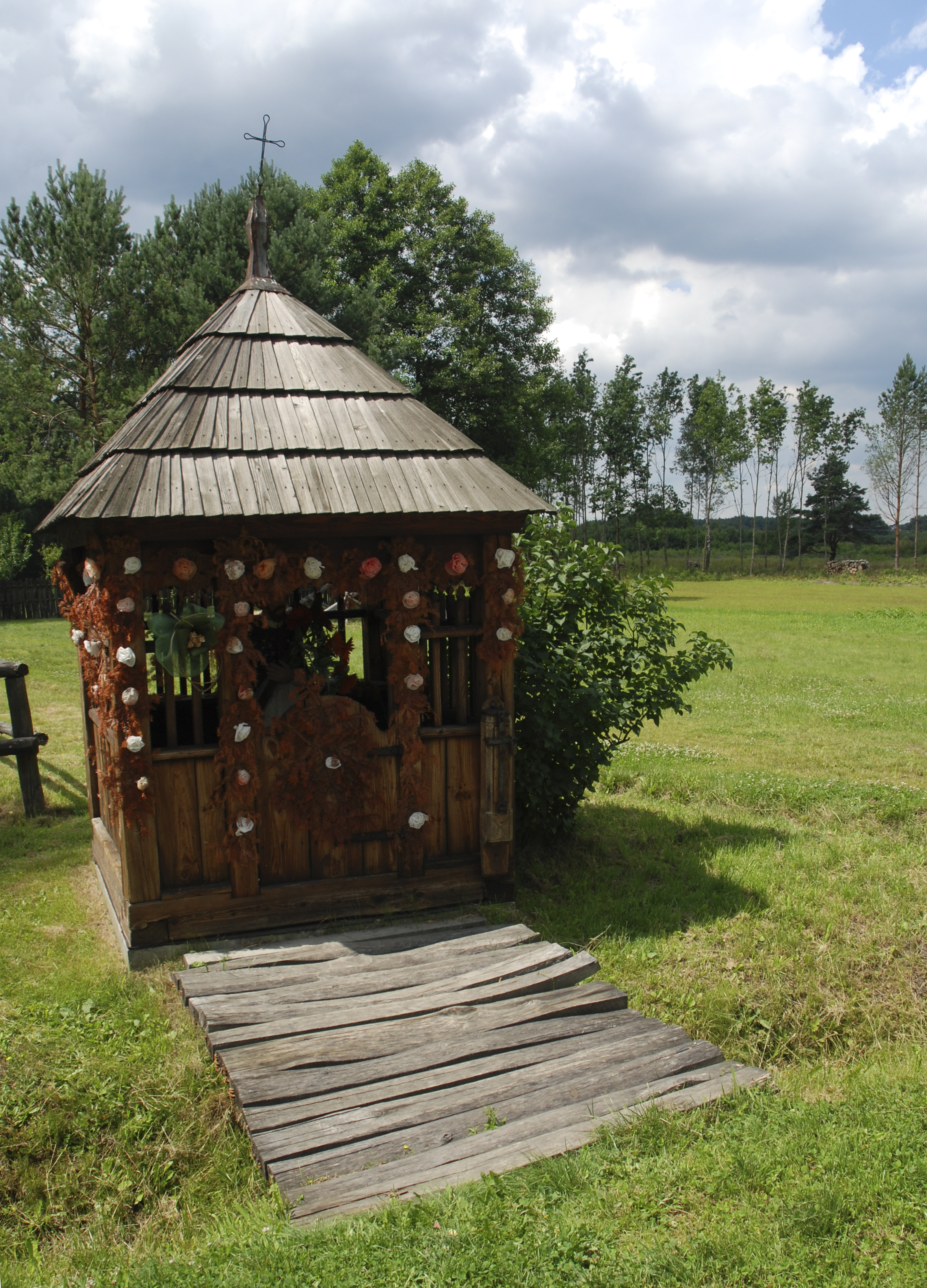 Lasowiacka część muzeum. Zrekonstruowana kapliczka z 1824 roku ze wsi Jeżowe. Kapliczka została wzniesiona specjalnie dla znajdującej się w niej rzeźby świętego Jana Nepomucena. Konstrukcja brogowa z balustradką, dach kryty gontem, szczyt zakończony pazdurem z metalowym krzyżem kowalskiej roboty.