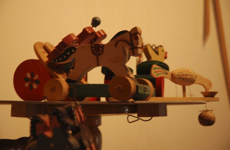 Wystawa zabawek w lasowiackiej chałupie z Wrzaw. Zabawki.