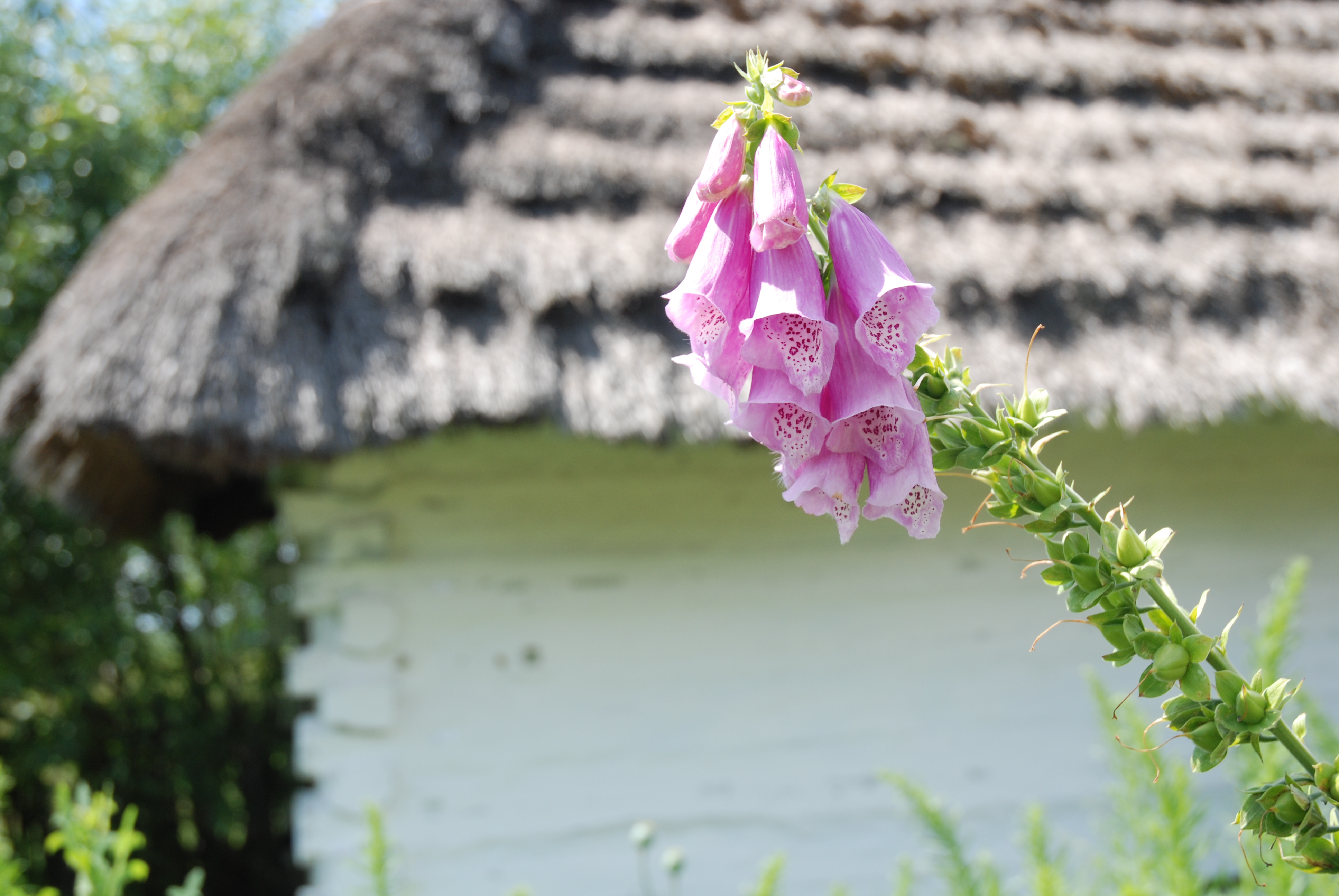 Lasowiacka cześć muzeum. Ogród kwiatowy przed chałupą biedniacką ze wsi Lipnica.