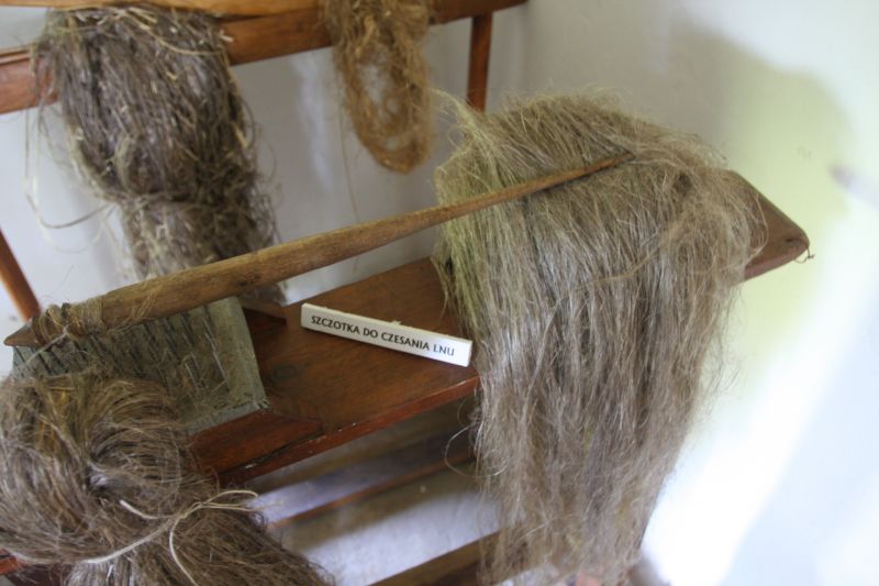 Wystawa o tkactwie w chałupie ze wsi Kopojno. Szczotka do czesania lnu.
