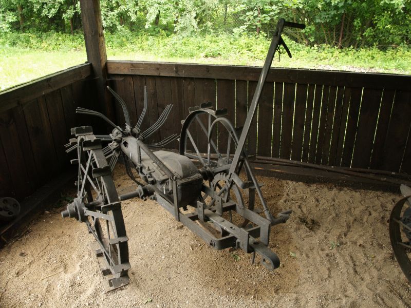 Ekspozycja z narzędzi rolniczych z końca XIX i początku XX wieku.