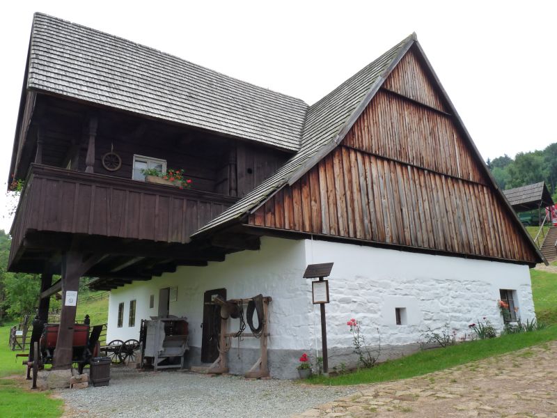 Zajazd z początku XIX w. Budynek ma kształt nieregularnego prostokąta. Pobielana część parterowa z kamieni i cegieł. Na wysokości stropu parteru znajduje się zrębowe pięterko podparte dwoma słupami. Wokół pięterka biegnie galeryjka z 6 profilowanymi słupami. Dach dwuspadowy kryty gontem.